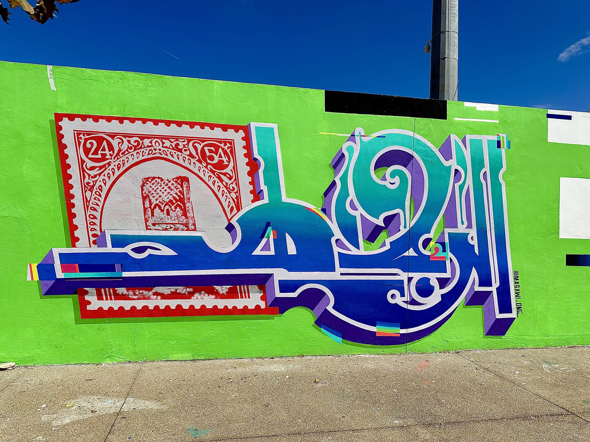 Les muraux d’Oussama Moussaoui, aka MASAWI, opèrent une synthèse entre héritage culturel et expression urbaine contemporaine. Il faut dire que cet artiste marocain, né à Casablanca en 1993, s’est d’abord formé à la calligraphie arabe avant de se tourner vers le street art. Ses fresques, souvent réalisées à l’aérosol, transforment les lettres en compositions dynamiques et vibrantes qui rendent hommage à la richesse culturelle du Maroc. Inspiré par les traditions de son pays, MASAWI s’attache à produire des œuvres porteuses de sens sur les thèmes de l’identité, de la mémoire et de la spiritualité.